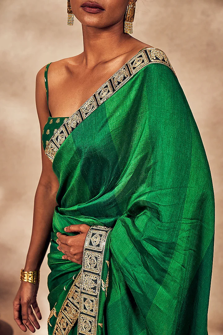 Green Raw Silk Foil Embellished Saree SetGreen Raw Silk Foil Embellished Saree Set