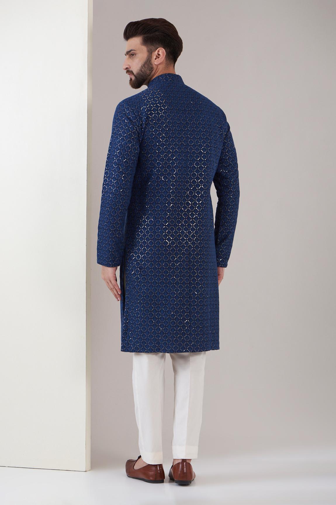 Blue Sequin Embroidered Silk Kurta