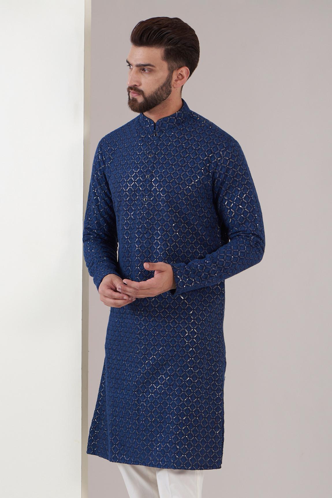 Blue Sequin Embroidered Silk KurtaBlue Sequin Embroidered Silk Kurta