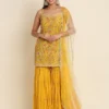Easy to slip on, it features three quarter sleeves, a round neck, gota embroidery and all-over Bandhani print.